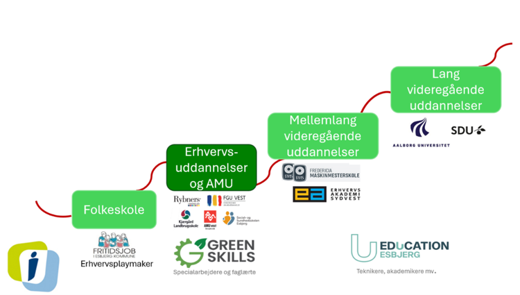 I Esbjerg kommune har man benhårdt satset på at omstille fra sort til grøn energi. For at fremme denne omstilling er der nedsat en konsulent- og vidensenhed, Green skills, der sigter på at koordinere og understøtte tiltag der fremmer rekruttering, opkvalificering og uddannelse af faglærte og specialarbejdere til den del af grønne omstilling som har sit omdrejningspunkt i Esbjerg området.