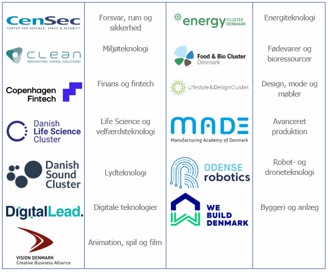 Her kan du finde information om de 13 nationale videns- og erhvervsklynger, der er en af hovedaktørerne i Danmarks erhvervsfremmesystem.
