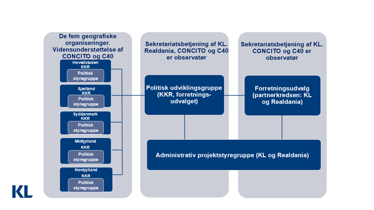 I Klimaalliancen i Hovedstadsregionen består den politiske styregruppe af KKR-formandskabet og fra 2026 yderligere tre politikere fra hovedstadskommunerne. Derudover er der etableret en administrativ styregruppe, som består af tre kommunale direktører, med direktøren fra Gate 21 som sparringspart.