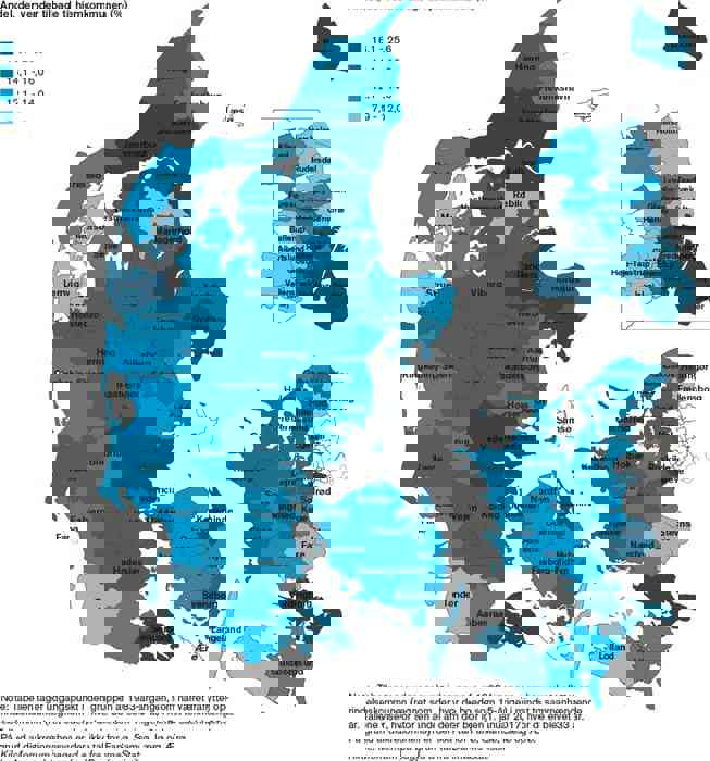 Der er dog store forskelle kommunerne imellem. I toppen ligger Tårnby Kommune, hvor 25,6 procent er flyttet tilbage, men også Hedensted, Dragør og Kerteminde Kommune med henholdsvis 21,3, 21,1 og 20,7 procent får mere end hver femte bysbarn tilbage. I den anden ende ligger Lolland og Langeland med henholdsvis 7,9 og 8,2 procent.