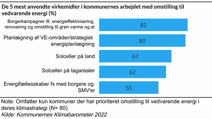 Mange kommuner arbejder ifølge undersøgelsen da også med kampagner målrettet borgerne som en af de vigtigste virkemidler i omstillingen til både grøn varme og vedvarende energi.
