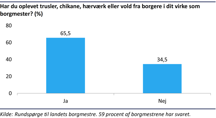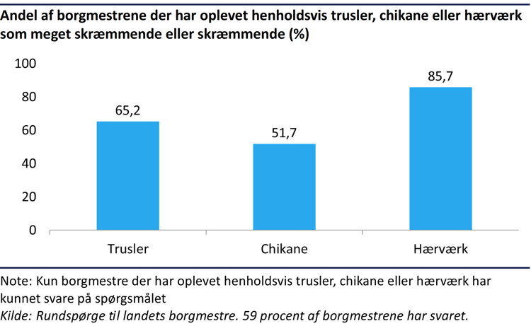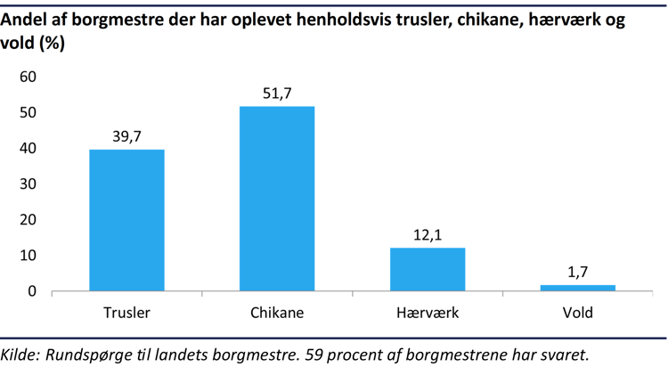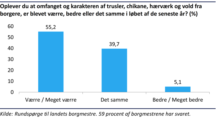 Samtidig er det bekymrende, at 85 procent af de borgmestre, som har været udsat for hærværk, oplever det som meget skræmmende eller skræmmende i Momentums rundspørge, bemærker han. Her er tallene 65 og 51 procent for dem, der har oplevet henholdsvis trusler og chikane.
