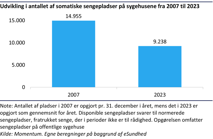 Momentums kortlægning viser da også, at antallet af somatiske sengepladser er faldet med 38 procent, så vi nu er nede på godt 9.000 sengepladser, mens der i 2007 var omkring 15.000 sengepladser.