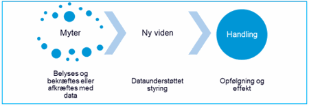 Det har givet ledelsen indsigt i ressourceforbrug og mulighed for prioritering og tæt opfølgning ved hjælp af nøgletal om sagsbehandlernes belastning og antal sager. Dermed har kommunen fået mulighed for at følge op, vurdere effekter og træffe beslutninger på et mere oplyst grundlag. Processen ses illustreret i figuren nedenfor.