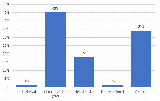 Det er samtidig værd at bemærke, at en tredjedel af kommunerne (34 pct.) endnu ikke kan vurdere niveauet af eksterne konsulenter i 2021. Flere af kommunerne har her angivet, at der er igangsat budgetanalyser vedr. konsulentforbruget med henblik på, at der kan træffes beslutninger om det fremtidige niveau.