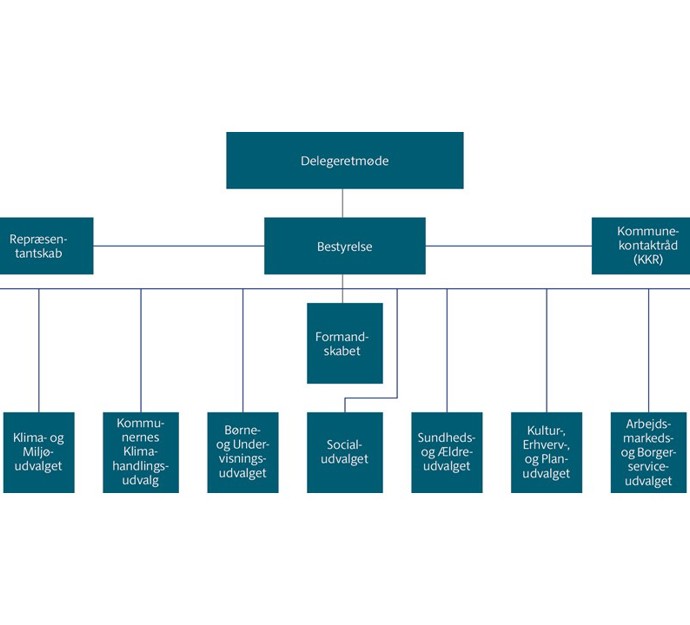 KL's politiske organisation består af i alt fem forskellige politiske organer: Bestyrelse, formandskab, otte udvalg, repræsentantskab og fem kommunekontaktråd (KKR).